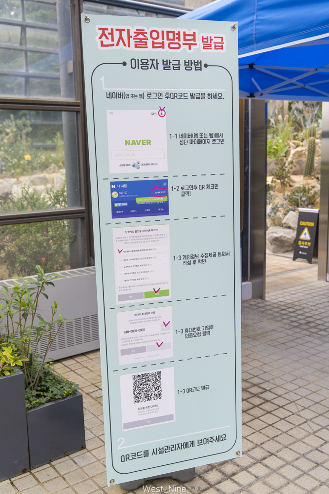 들어가자마자 발열체크를 하고 전자출입 명부로 출입 명부를 작성하셔야 합니다.