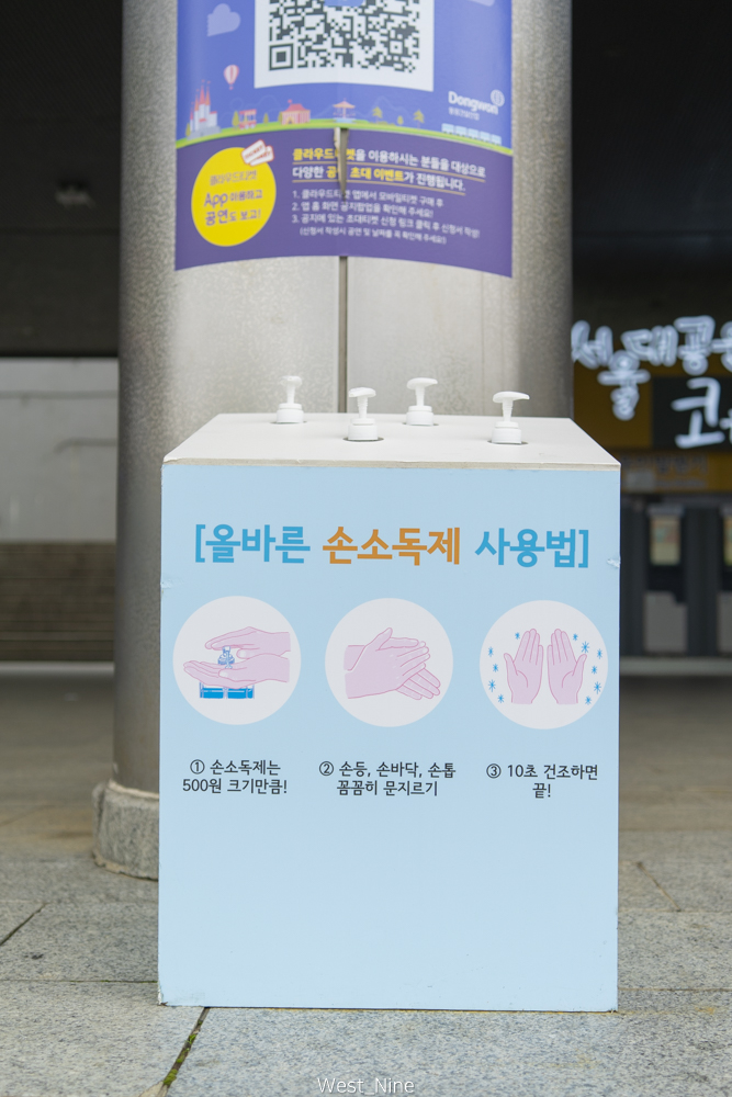 서울대공원은 곳곳에 손소독제를 배치하여 많은 사람들이 손 소독을 자주 할 수 있도록 격려해줍니다 ㅎㅎ