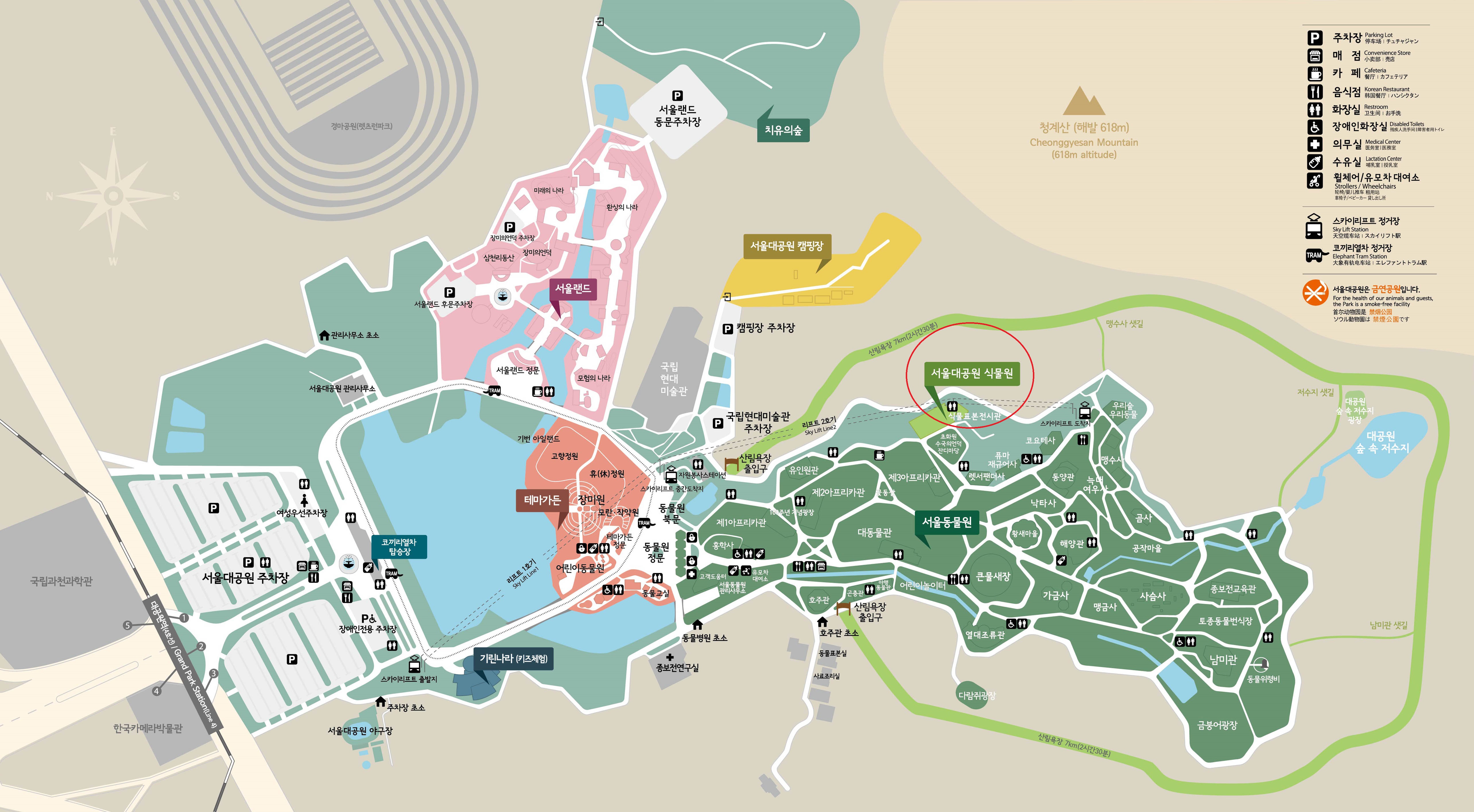 서울대공원 동식물원 안에는 기린 바로 앞에 식당이 하나 있고, 호랑이 바로 앞에 식당이 하나 있습니다.